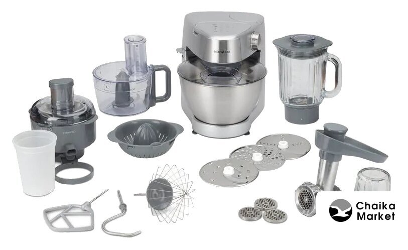 1000 Вт, планетарное смешивание, объем чаши: 3.9 л, терки, мясорубка, соковыжималка, блендер