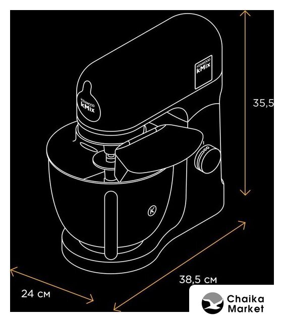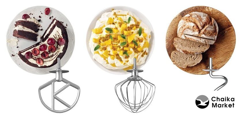 1000 Вт, планетарное смешивание, объем чаши: 4.3 л, терки, мясорубка, блендер