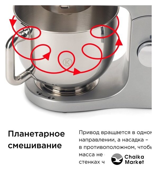 1000 Вт, планетарное смешивание, объем чаши: 4.3 л, терки, мясорубка, блендер