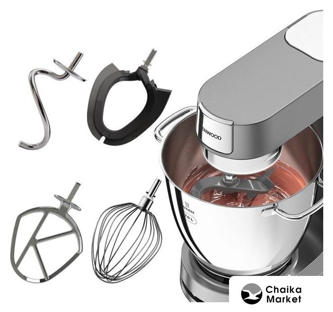 Полная комплектация | венчик, крюк для теста, К-образная насадка, насадка гибкий-взбиватель, защитная крышка, жаростойкая лопатка, 2 чаши. |