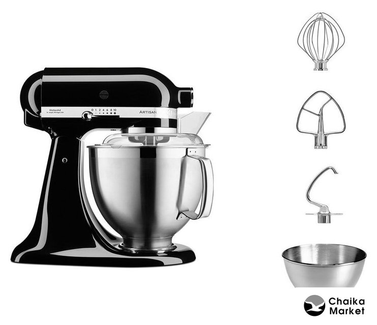 Полная комплектация | Чаша из нержавеющей стали объемом 4,8 лЧаша из нержавеющей стали объемом 3 лПрозрачный защитный ободВенчикКрюк для тестаНасадка для смешивания |