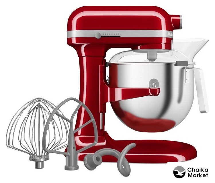 | Полная комплектация | кухонная машинаметаллическая чаша 6,6 лвенчик насадка для смешивания густых масскрюк для тестакрышка чаши для защиты от брызг |