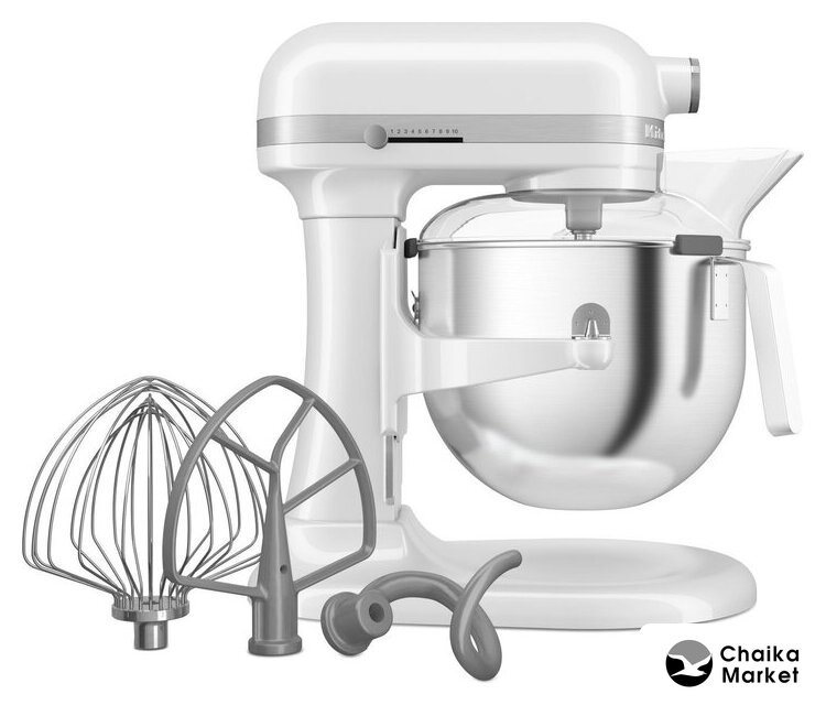 | Полная комплектация | кухонная машинаметаллическая чаша 6,6 лвенчик насадка для смешивания густых масскрюк для тестакрышка чаши для защиты от брызг |