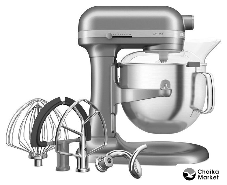 | Полная комплектация | кухонная машинаметаллическая чаша 6,6 лвенчик насадка для смешивания густых масснасадка для смешивания с двумя силиконовыми лопастямикрюк для тестакрышка чаши для защиты от брызг |