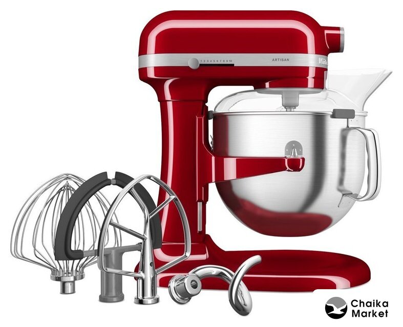 | Полная комплектация | кухонная машинаметаллическая чаша 6,6 лвенчик насадка для смешивания густых масснасадка для смешивания с двумя силиконовыми лопастямикрюк для тестакрышка чаши для защиты от брызг |