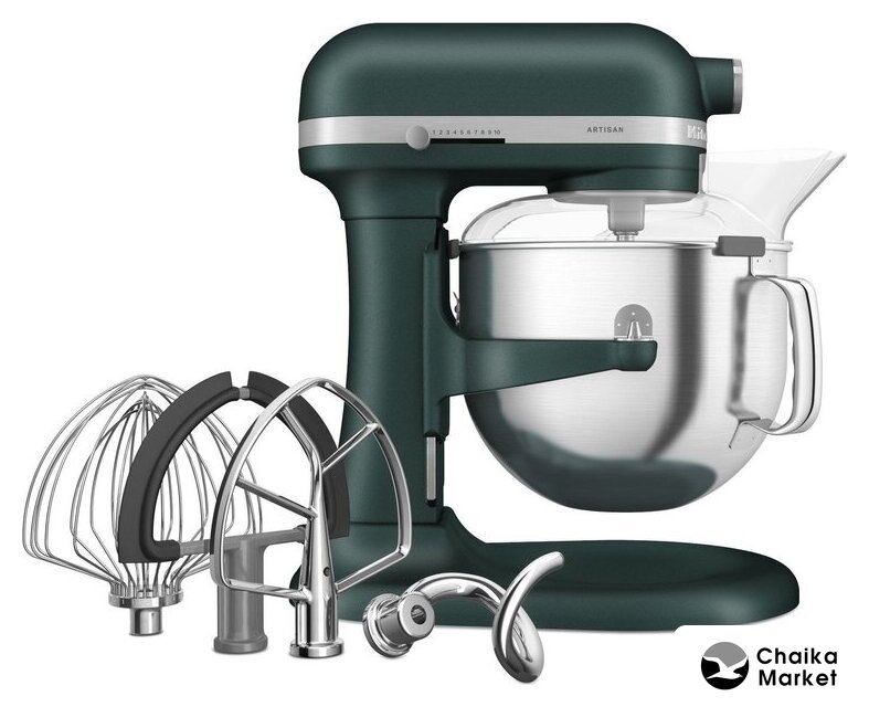 | Полная комплектация | кухонная машинаметаллическая чаша 6,6 лвенчик насадка для смешивания густых масснасадка для смешивания с двумя силиконовыми лопастямикрюк для тестакрышка чаши для защиты от брызг |