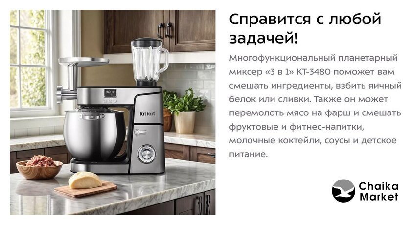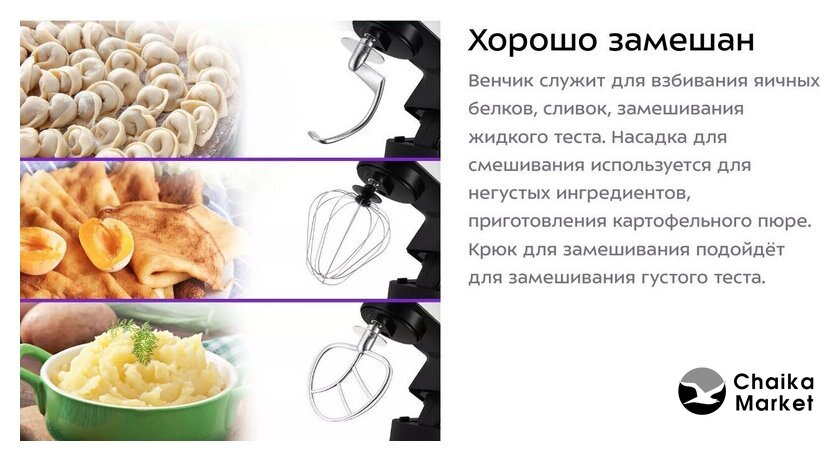 Функции | мясорубка, блендер, взбивание, смешивание, замешивание дрожжевого теста |