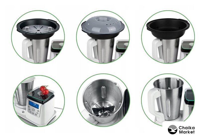 | Функции | взбивание, смешивание, измельчитель, рубка, пароварка, температурная обработка (нагрев) |