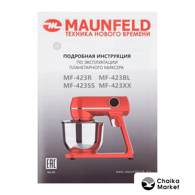 1800 Вт, планетарное смешивание, объем чаши: 6.5 л