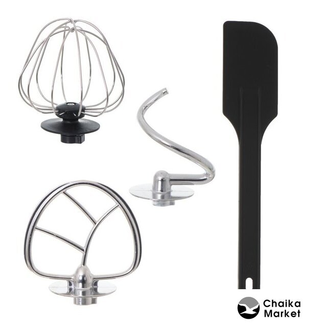 | Полная комплектация | Чаша 3,5 лНасадка для тестаНасадка для смешиванияВенчикКрышка от брызгЛопатка |