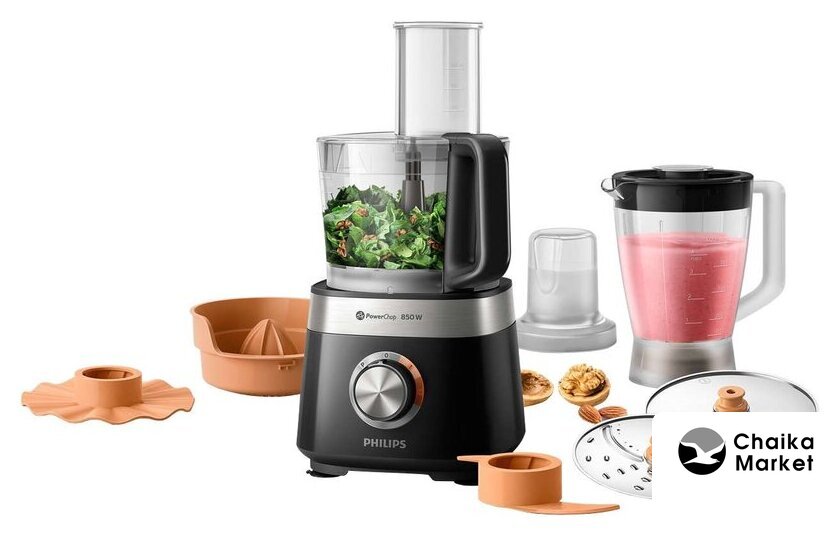 | Функции | блендер, цитрус-пресс, взбивание, смешивание, измельчитель, рубка, терка, шинковка, ломтерезка, помол круп, кофе |