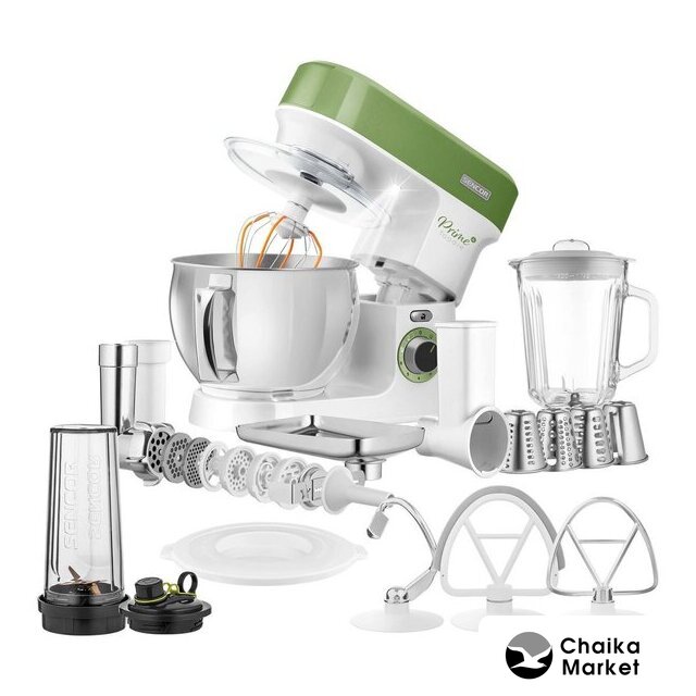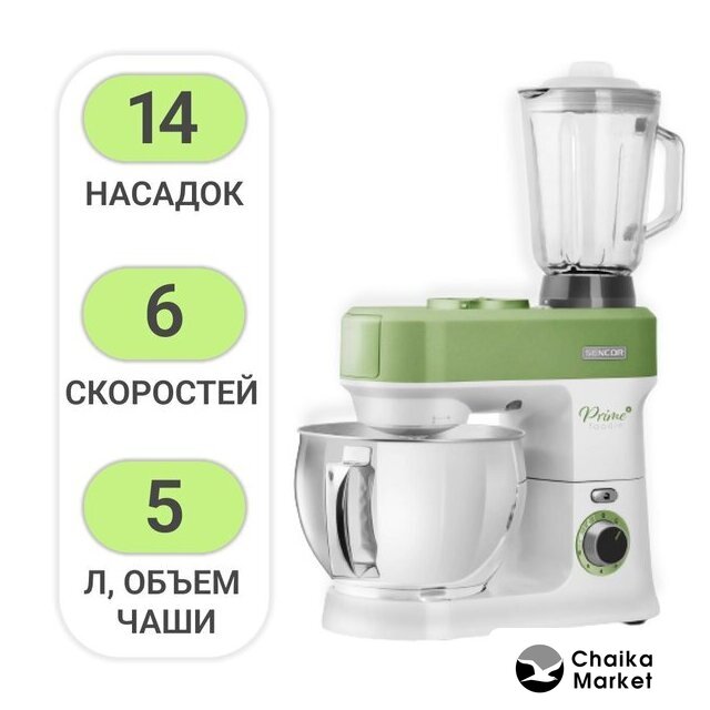 1200 Вт, планетарное смешивание, объем чаши: 5 л, терки, мясорубка, блендер