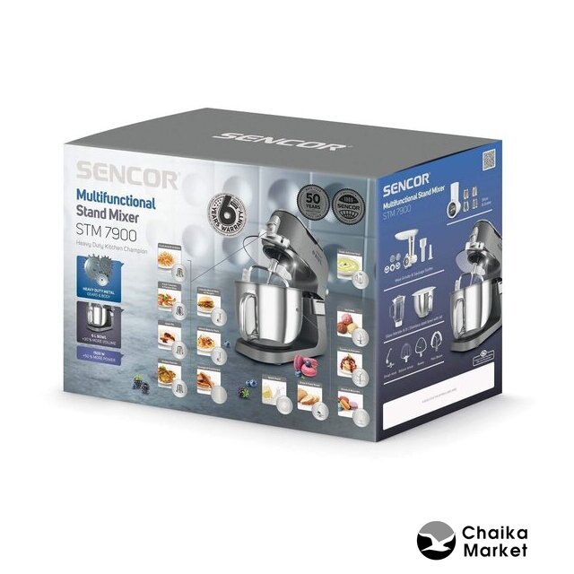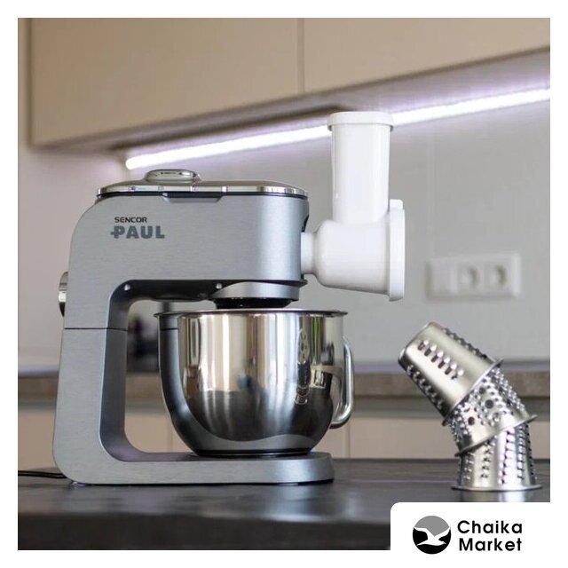 1500 Вт, планетарное смешивание, объем чаши: 5.5 л, терки, мясорубка, блендер