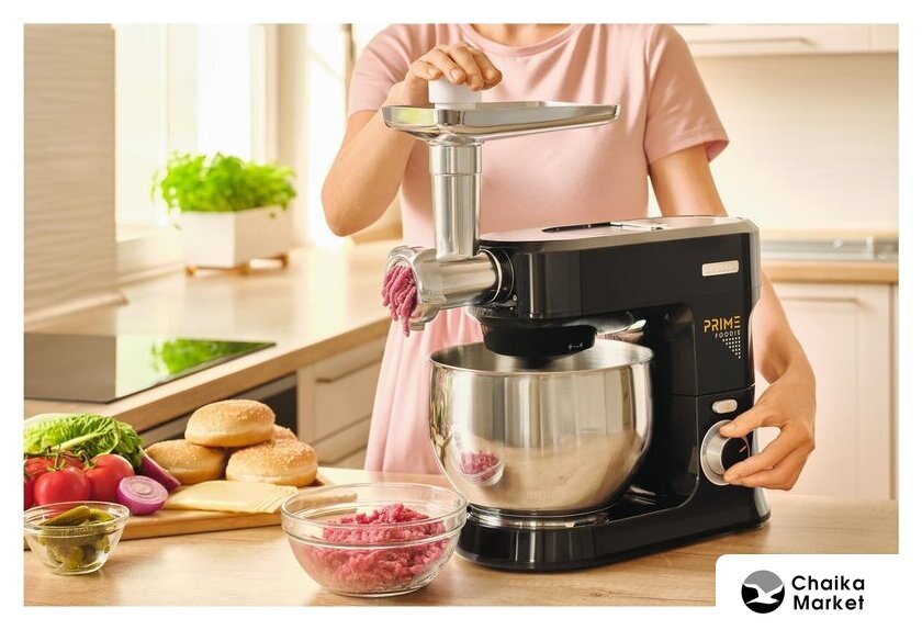 1000 Вт, планетарное смешивание, объем чаши: 4.5 л, мясорубка
