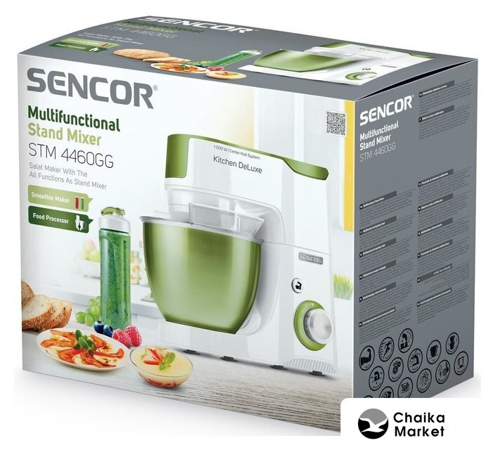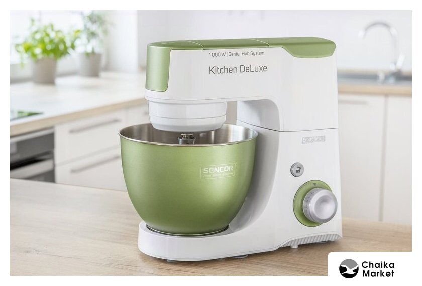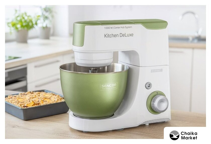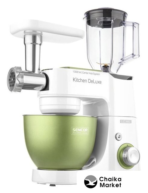 1000 Вт, планетарное смешивание, объем чаши: 4.3 л, терки, мясорубка, блендер