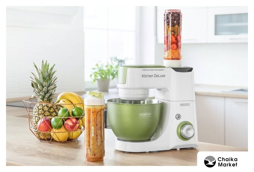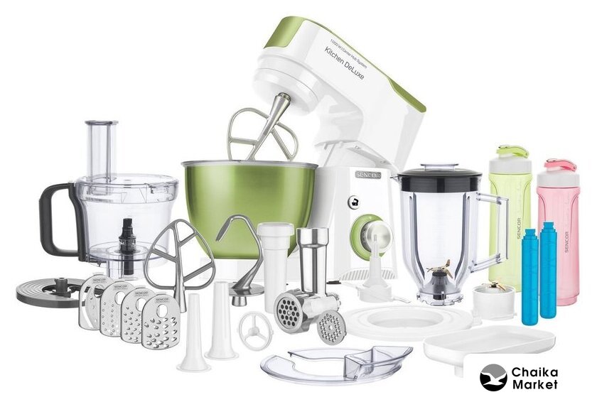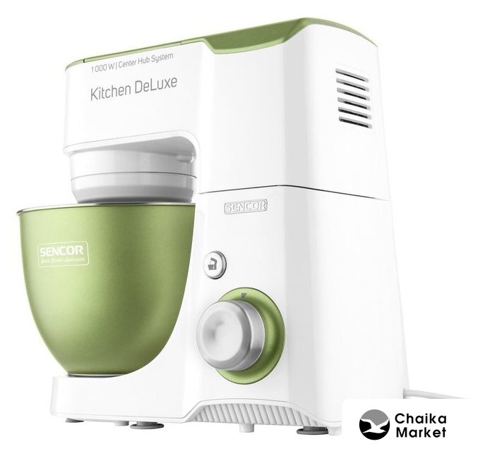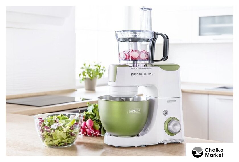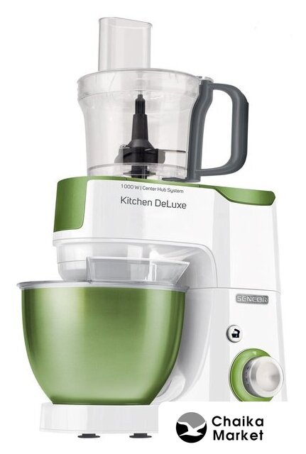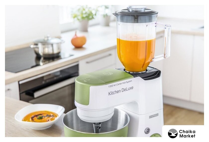 1000 Вт, планетарное смешивание, объем чаши: 4.3 л, терки, измельчитель, соковыжималка, блендер
