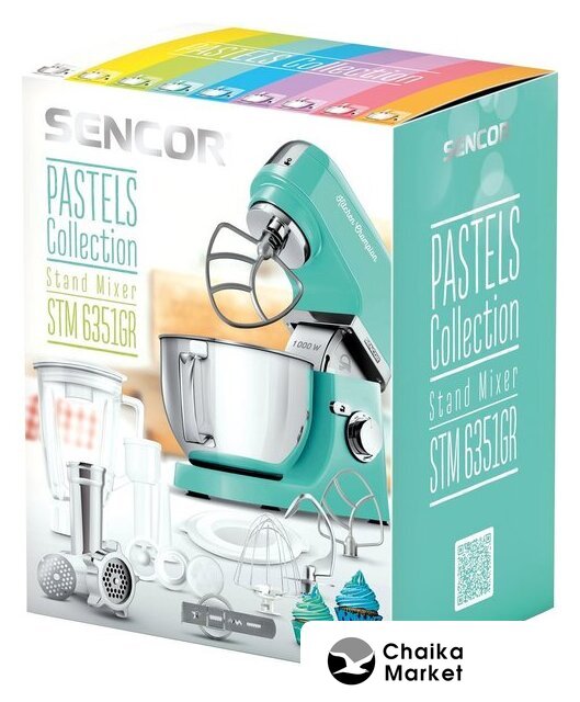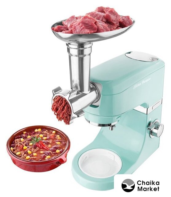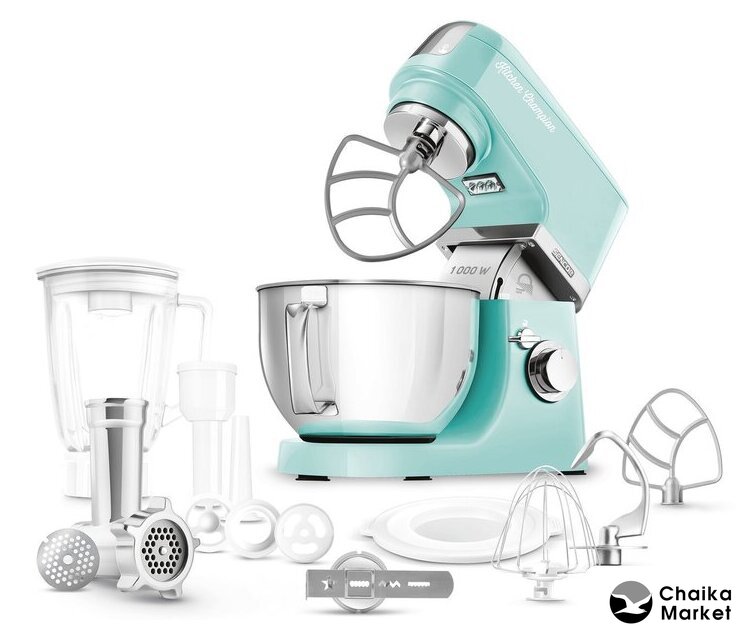 1000 Вт, планетарное смешивание, объем чаши: 4.5 л, мясорубка