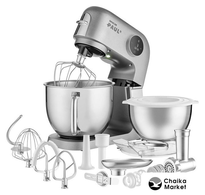 1500 Вт, планетарное смешивание, объем чаши: 5.5 л, терки, мясорубка, блендер