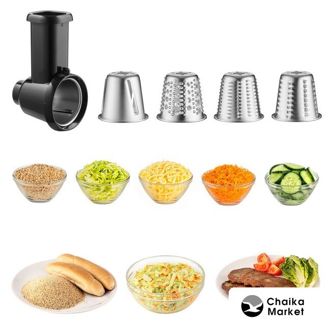 Функции | мясорубка, блендер, взбивание, смешивание, замешивание дрожжевого теста, измельчитель, рубка, терка, шинковка, ломтерезка |