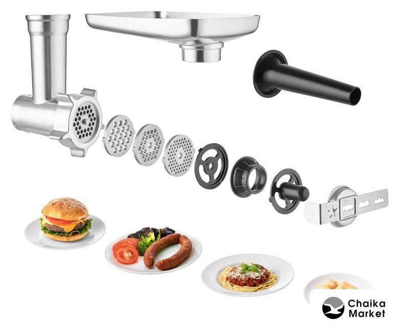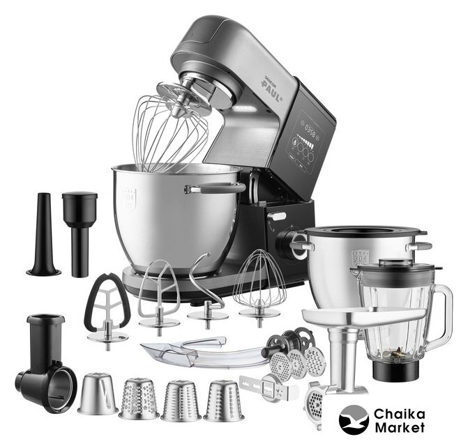 1800 Вт, планетарное смешивание, объем чаши: 5 л, терки, мясорубка, блендер
