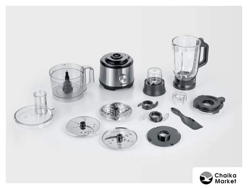 Полная комплектация | Стеклянный блендер 1,5лЧаша кухооного комбайна 1,5лБлок ножей из стали3 диска 2 в 1(крупная терка/соломка, мелкая терка/соломки, мелкая терка/терка для картофеля), диск для эмульгированияМельничкаПластиковый нож для замешивания тестаЛопатка |