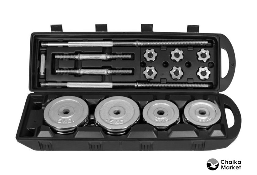 Комплектация | - гриф гантельный 25 мм 2 шт по 34 см, посадочный размер для дисков 10 см;- сборный гриф 1,5 м посадочный диаметр 25 мм с посадочной длинной 29 см; - замки винтовые 6 шт; - соединитель для формирования грифа 150 см;- 6 дисков - 0,5 кг; - 6 дисков - 1,25 кг;- 4 диска - 2,5 кг; - 4 диска - 5,0 кг. |