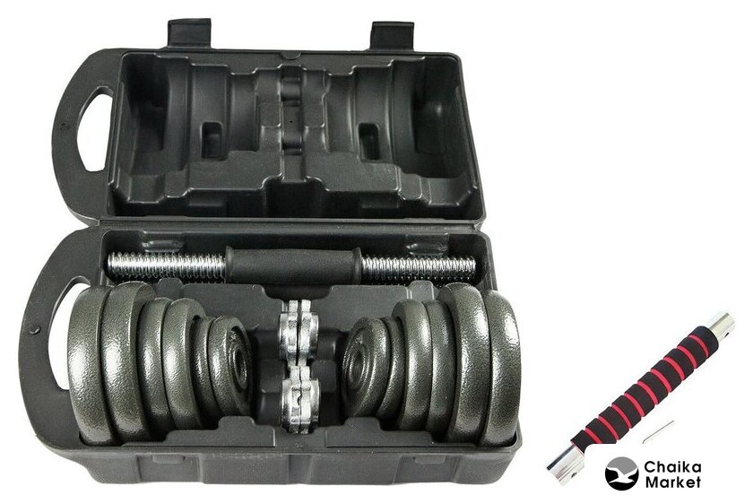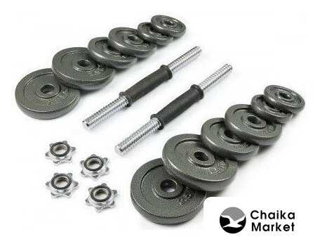 гантели с грифом для штанги, вес снаряда 20 кг, конструкция: разборная, посадочный 26 мм