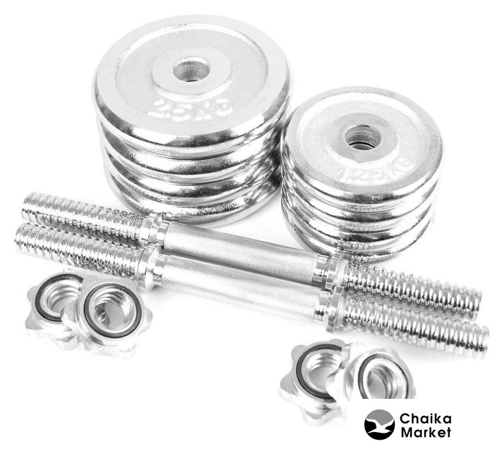 гантели с грифом для штанги, вес снаряда 20 кг, конструкция: разборная, посадочный 26 мм