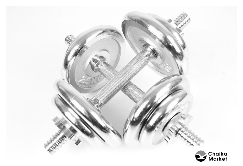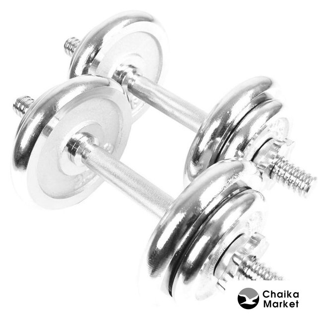 набор гантелей с соединительным грифом, 2 шт., вес снаряда 10 кг, конструкция: разборная, посадочный 26 мм, длина 35 см