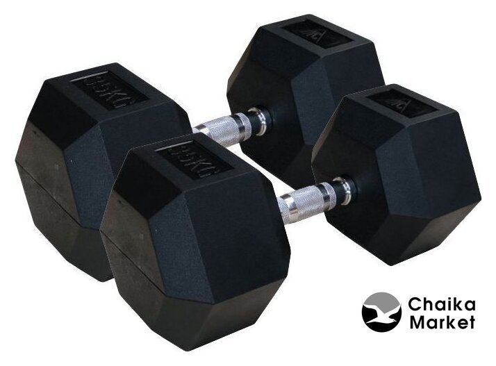 набор гантелей, 2 шт., вес снаряда 32.5 кг, конструкция: цельная