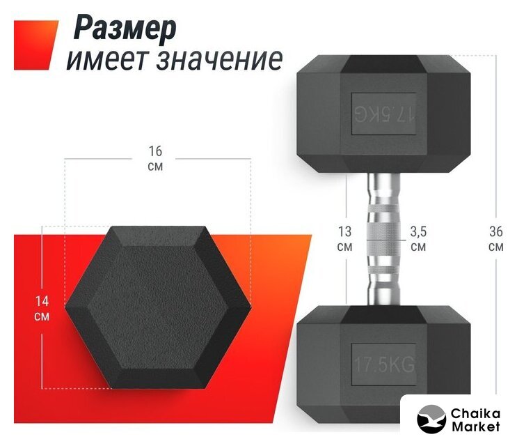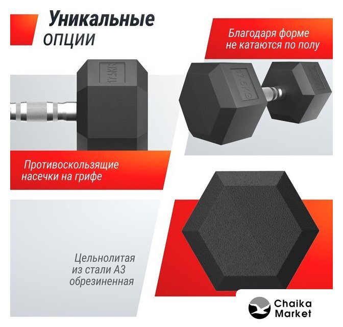 гантель, 1 шт., вес снаряда 45 кг, конструкция: цельная, длина 44 см