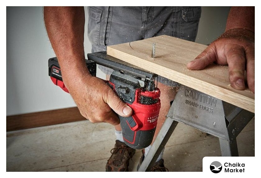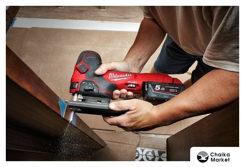 грибообразная рукоятка, питание: аккумулятор (12 В), аккумулятор в комплекте, глубина пропила: 70 мм (дерево), 3 мм (сталь), 800–3000 ходов/мин, ход пилки: 22 мм, 1.7 кг