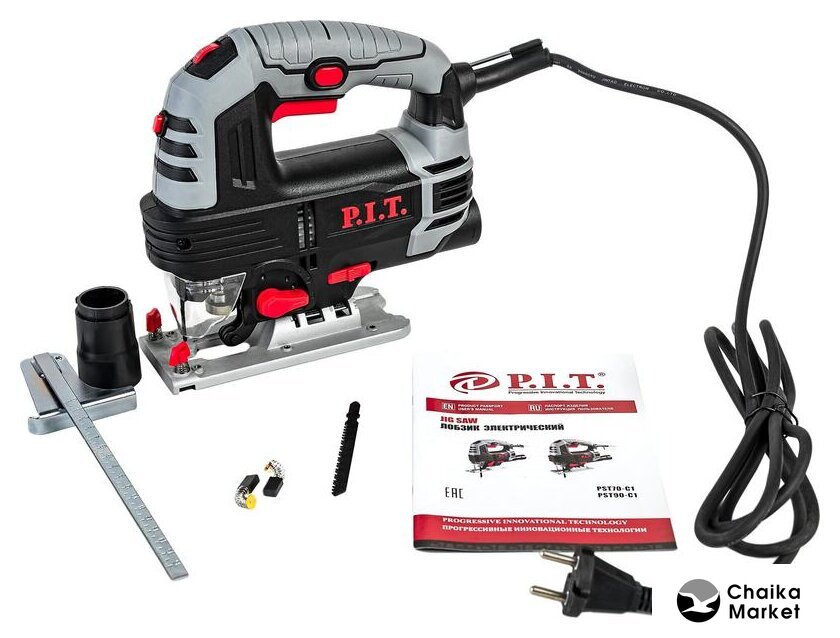 рукоятка-скоба, питание: сеть, глубина пропила: 100 мм (дерево), 10 мм (сталь), 800–3000 ходов/мин
