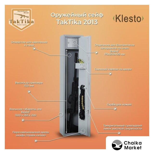 оружейный, объём: 89 л, ключевой, взломостойкий замок, 300×1300×230 мм, 19 кг