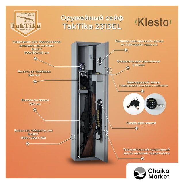оружейный, объём: 89 л, ключевой, взломостойкий замок, 300×1300×230 мм, 19 кг