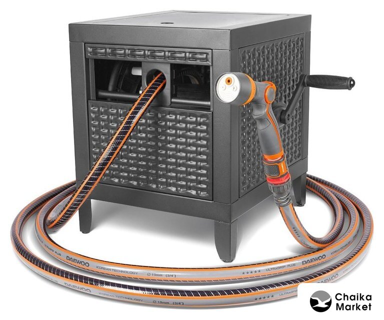 катушка со шлангом с распылителем, пластик, гладкая поверхность, диаметр 12.7 мм, длина 20 м, серый