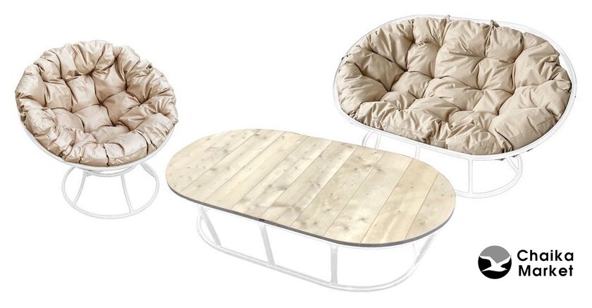 стол + 2 кресла, стол: 600×600×550 мм, основание - ротанг, столешница - стекло, сиденье: 680×630 мм, материал: ткань