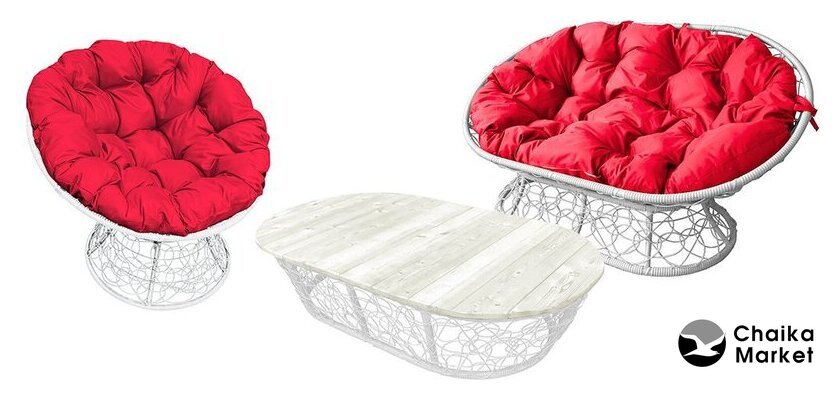 диван + 2 кресла + столик, стол: 600×600×500 мм, основание - искусственный ротанг, столешница - дерево, сиденье: 710×700 мм, материал: ткань