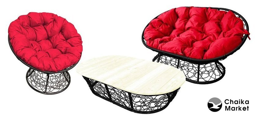 диван + 2 кресла + столик, стол: 600×600×500 мм, основание - искусственный ротанг, столешница - дерево, сиденье: 710×700 мм, материал: ткань