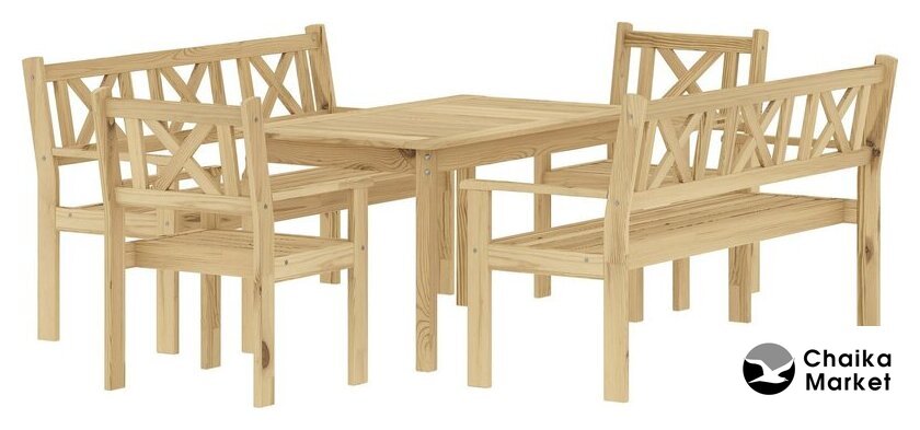 | Состав набора | стол + 2 скамьи + 2 кресла |