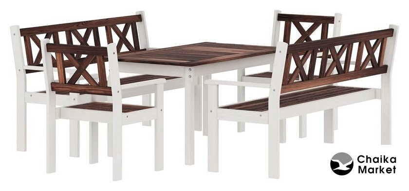 | Состав набора | стол + 2 скамьи + 2 кресла |