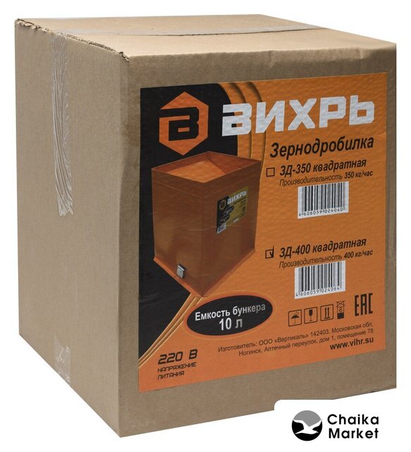 Комплектация | - Зернодробилка – 1 шт.- Руководство по эксплуатации – 1 шт |