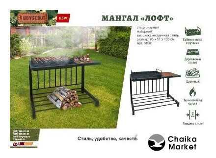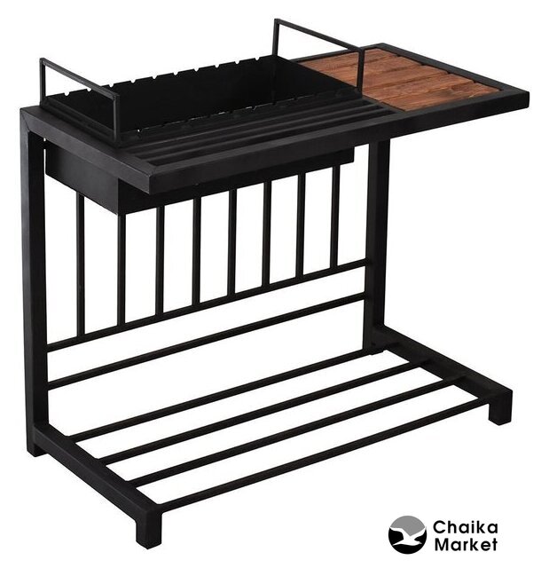 шампуры, гриль-решетка, сталь, столики, полка для дров (принадлежностей), колеса, 125x70x94 см
