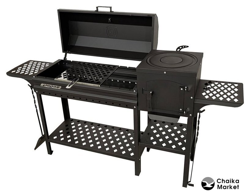 Комплект поставки | совок, кочерга, шампуры, решетка, боковые полки , термометр |