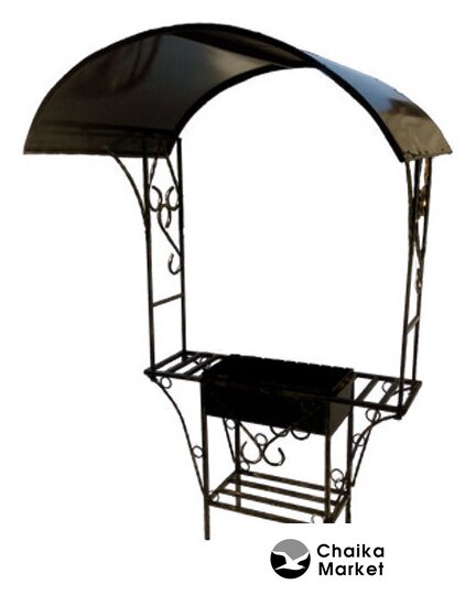 шампуры, гриль-решетка, сталь (2 мм), крышка, столики, полка для дров (принадлежностей), 170x38x90 см