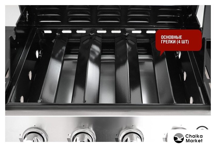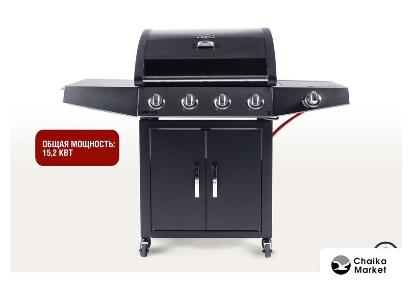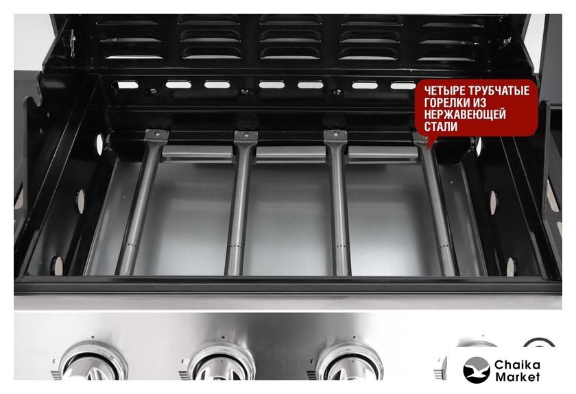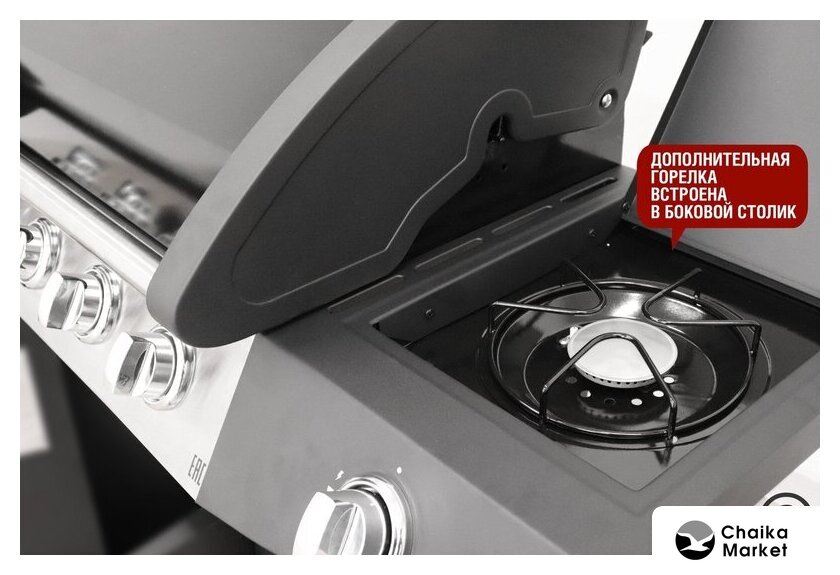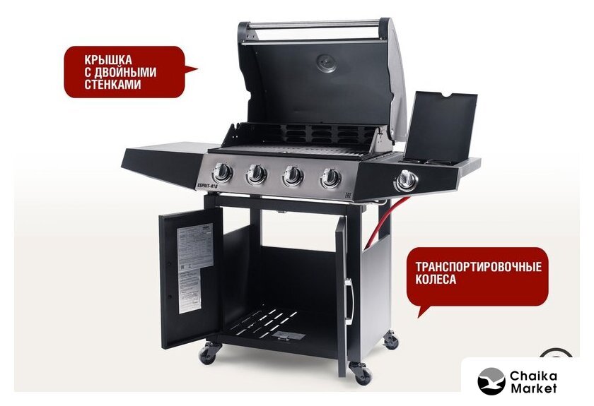 гриль-решетка, нержавеющая сталь, крышка, столики, полка для дров (принадлежностей), колеса, 129x56.3x117.4 см