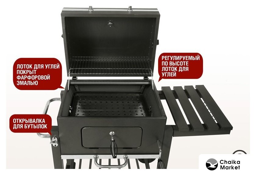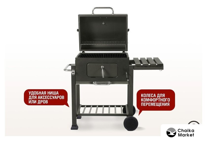 гриль-решетка, сталь, крышка, столики, полка для дров (принадлежностей), 69.5x111x116 см