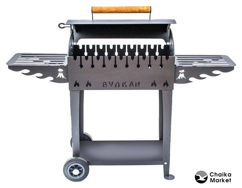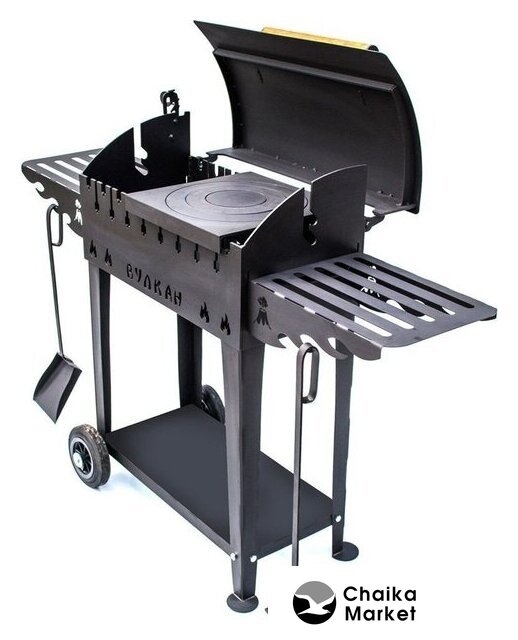 Комплект поставки | жаровня, крышка, ручка, крючки для аксессуаров, колеса (2 шт.), дровница, ножки (2 шт.), полка (боковая 2 шт.) |