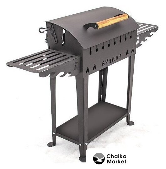 Комплект поставки | ножки (4 шт.), крышка, ручка, жаровня, дровница, крючки для аксессуаров, полка (боковая 2 шт.) |
