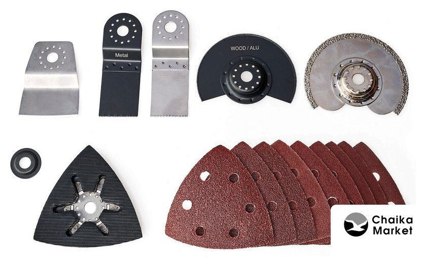 | Комплект поставки | - 1 дельта-шлифовальный башмак с застежкой-липучкой- 1 пильное полотно с алмазным сегментом для затирки плитки- 1 сегментное пильное полотно (HSS) для дерева, пластика, мягкого металла- 1 погружное пильное полотно (BIM) по металлу- 1 погружное пильное полотно (HCS) для дерева и пластика- 9 наждачных бумаг (3*P60/3*P80/3*P120)- 1x скребокВ комплект поставки не входят аккумулятор и зарядное устройство (продаются отдельно). |